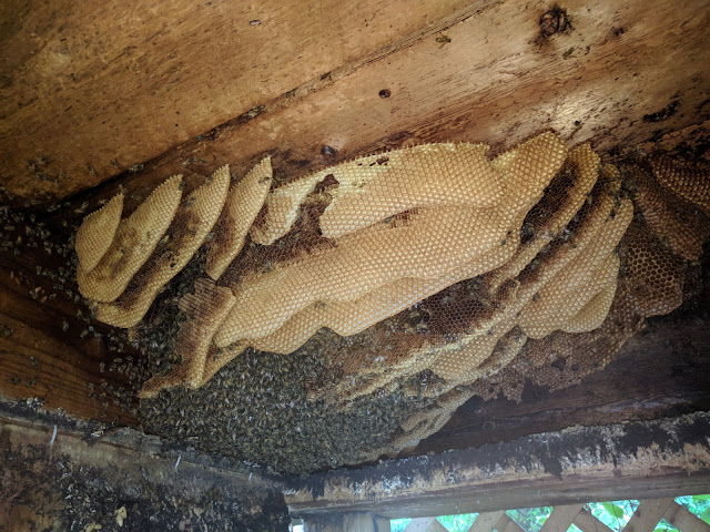 Removing a panel in the ceiling of a crawl space exposed a big, beautiful wild nest: